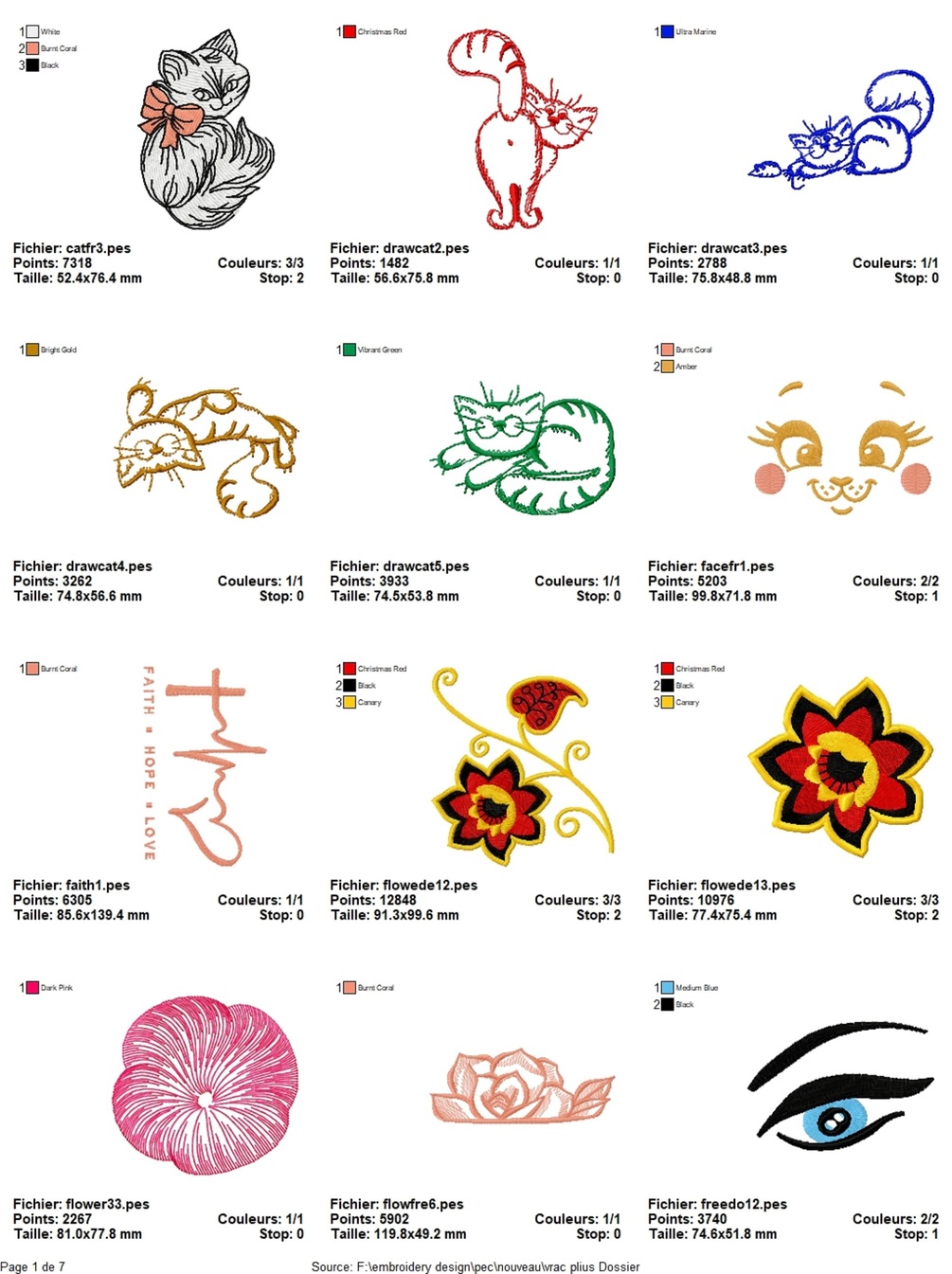 set of designs for embroidery machine contains files in the following formats