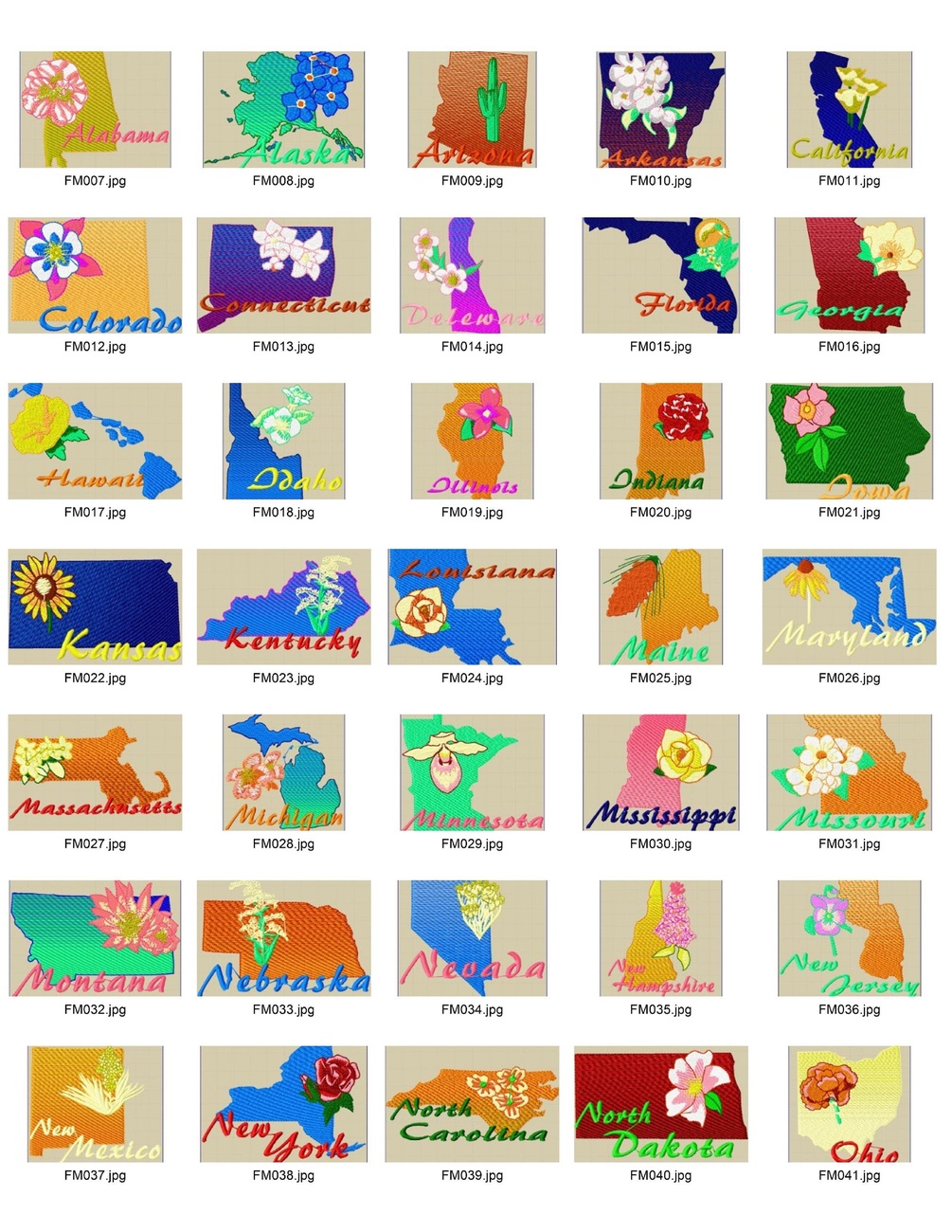 OESD 11610 State Flowers Embroidery Designs